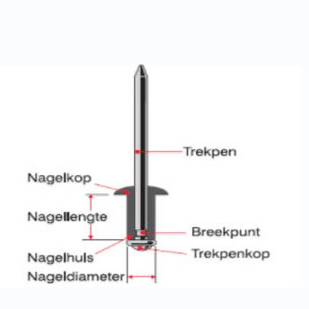 De popnagel wordt eenvoudig bevestigd met een speciaal trekgereedschap: geplaatst op de te verbinden onderdelen, aangetrokken, waardoor de trekpenkop de nagelhuls uitbuigt en afbreekt op het breekpunt. Zo ontstaat een sterke en betrouwbare verbinding.