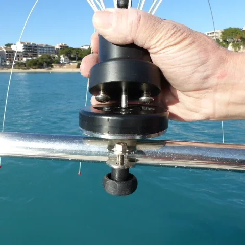 Montagehouder voor het snel en eenvoudig bevestigen van een vogelverschrikker aan de reling of handrail van een boot. Duurzaam en stevig ontwerp, bestand tegen wind en weersinvloeden.